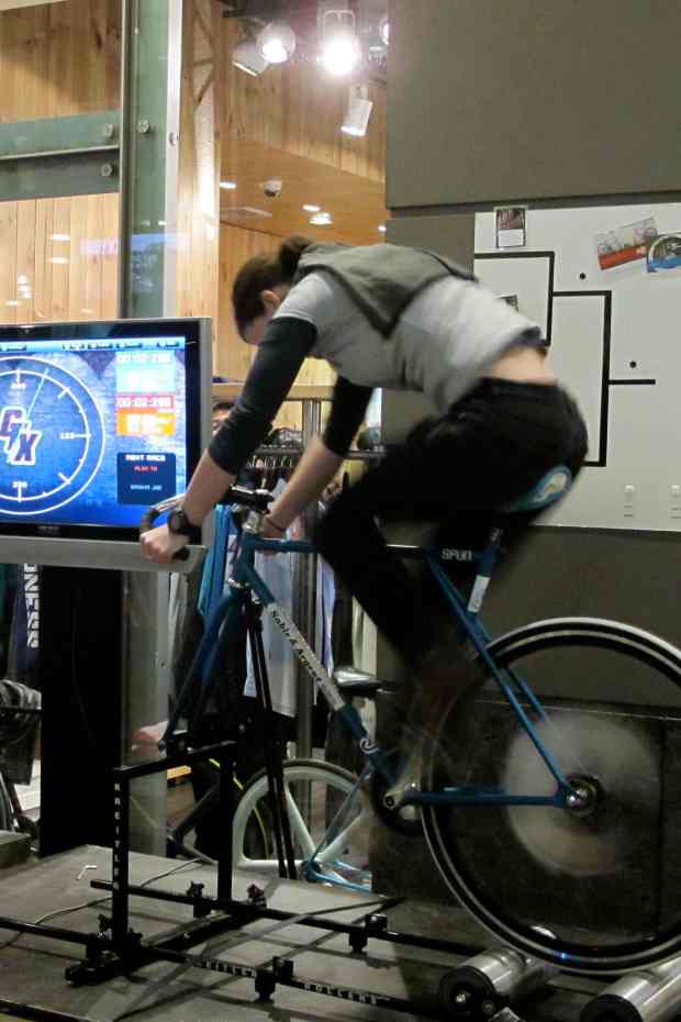 In the women’s race I pedaled so hard in 29 short seconds that I reached a whole new level of ‘can’t stand up, legs failing’ but it was enough to win a cool t-shirt. I spent the rest of the night laughing and cheering so hard that I’d go back again just for that alone! Nick won his round, Rob missed the final after a scissors, paper, rock misfire, and all three of us got trendy spoke cards just for entering. Bring on next week! Are you in?