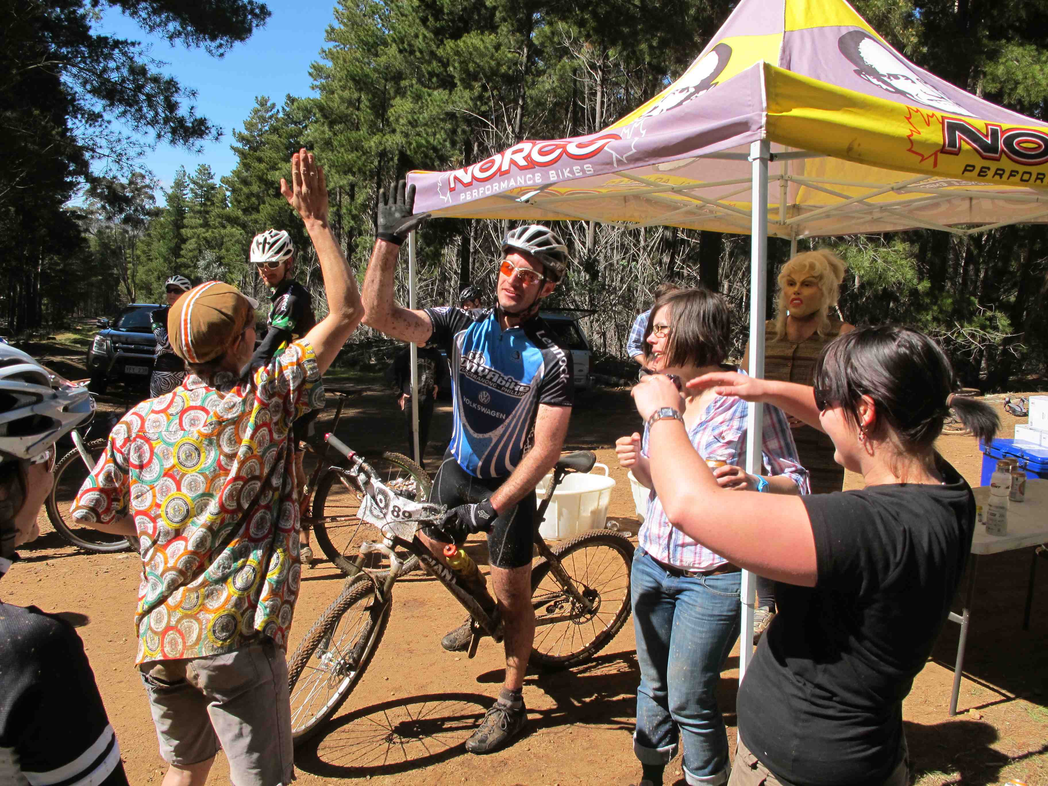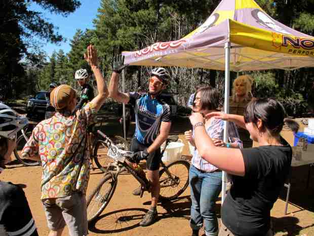 Sunday was the XC race. Click here for results from this one, you’ll never see so many DNFs for a race that happened in such perfect weather. I’d gotten to know the Rob better by now and improved my lack of speed by about 50% this time around. Unfortunately my quads were in such a state of shock from all the uphills, that I couldn’t hold my body weight above the seat when it came to the fun parts. I rode through the beer tent at lap 1.5, and never left, preferring instead to help other riders as a designated drinker.