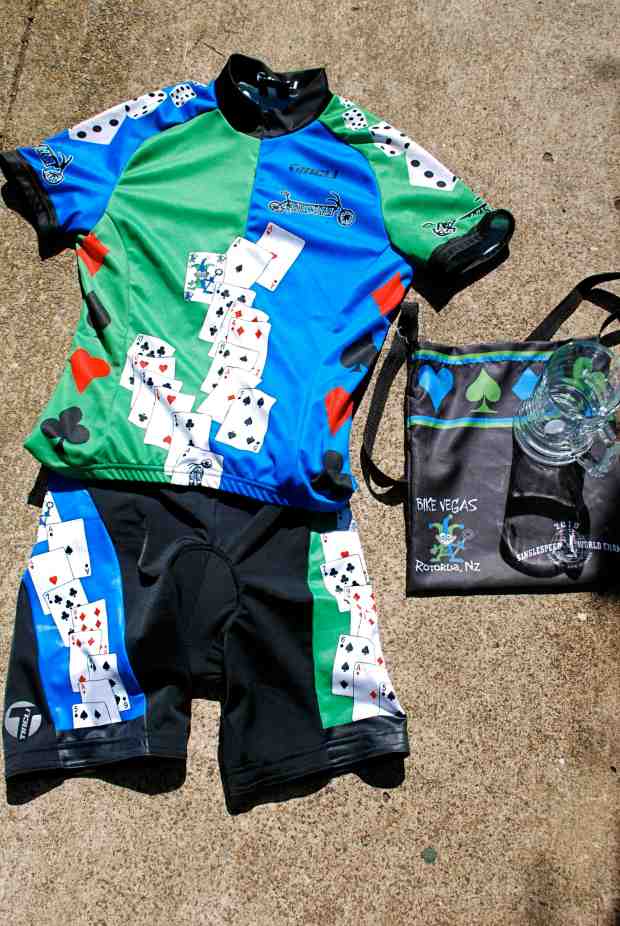 Thank you to Bike Vegas for supporting this competition with so many bikes and so much enthusiasm. Thank you to Dave Joy especially who insisted I didn’t walk out the shop door without a set of custom riding kit (in women’s sizing too, can you believe it?!), and my very own limited edition beer glass and carry bag. Every time I use this stuff it will make me feel proud to have spent time with such a great community of people. I’ll post details of the auction when I hear about it so stay tuned. Aussie riders might want to keep in mind that the currency conversion will probably mean enough left over change to cover freight. Or, at the very least, there will be a bike waiting for you next time you cross the Tasman for a ride.