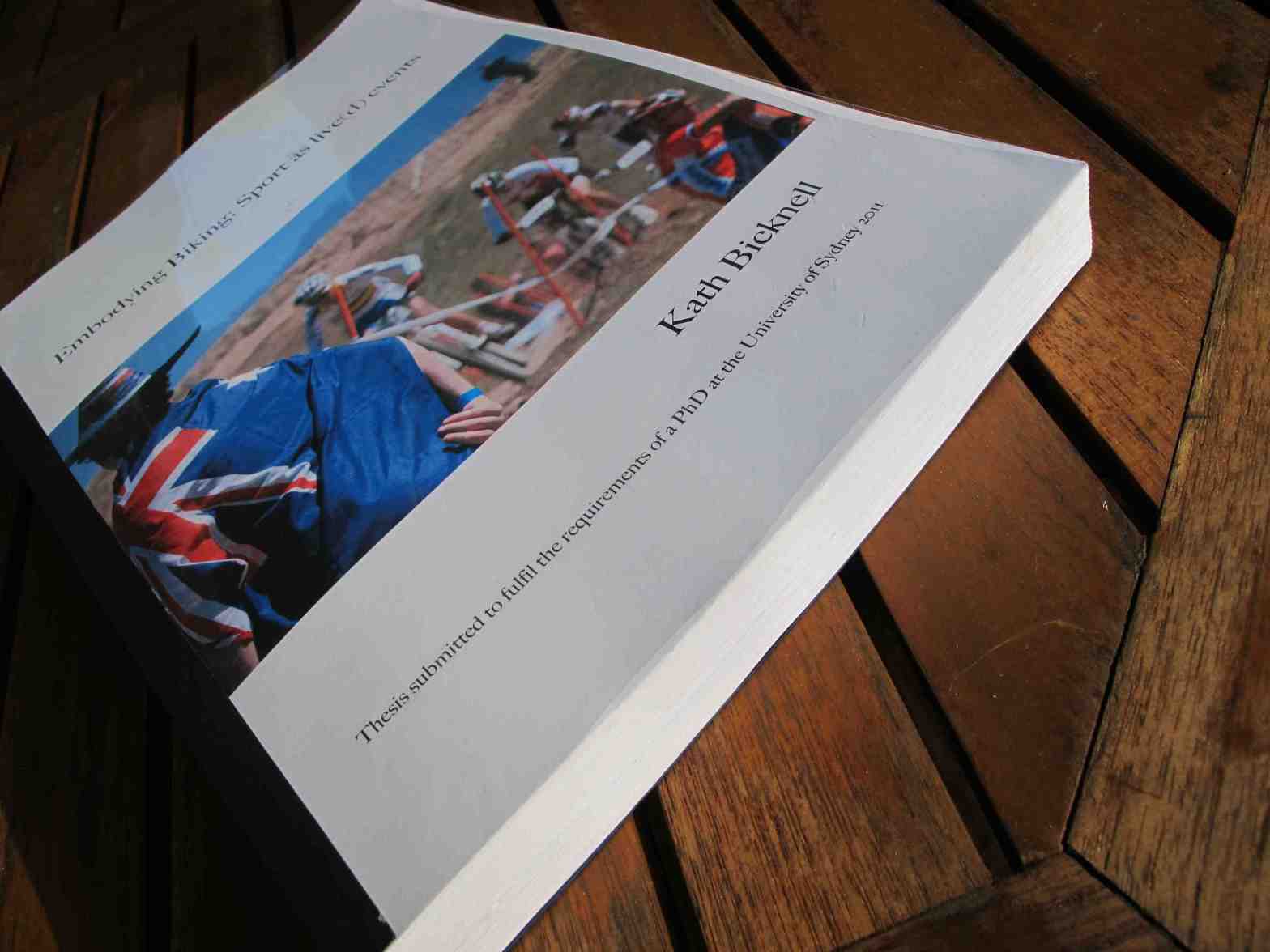 My PhD thesis, “Embodying Biking: Sport as live(d) events”, looks at the relations between thinking, doing and riding. What I’ve really enjoyed about the work is that when most people read it, or hear about it, they relate stories about riding to activities from their own world: running, theatre, medicine, music, F1, surfing, dancing, climbing, kung fu, writing, painting… Depending on who I talk to, the way I describe this work bends toward the interests of who I’m talking to as well: it’s about why the fastest looking legs on the start line aren’t always the first across the finish line. How staging one event, or funding one group of riders, has impacts on a wider, riding community. Through studying audiences at mountain bike events, it helps us make sense of spectators’ experiences in situations when verbal interaction is not the done thing. It’s about moving. Fast. And how we guide and understand those movements as they happen. And it’s a set of ideas that I hope to develop more in the future too, doing other projects, with other people.