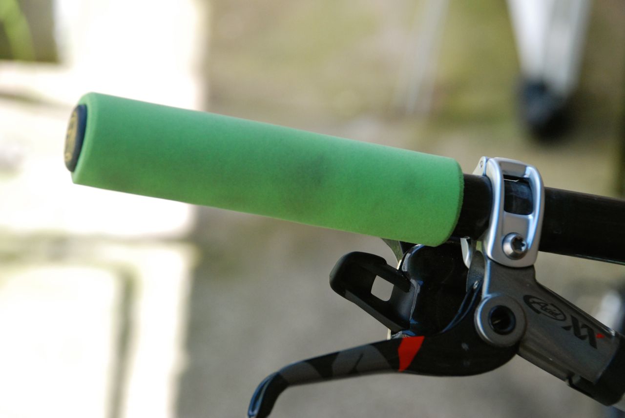 The biggest differences between this bike and my previous one are the SRAM XX running gear, the oversize BB30 bottom bracket and ever so slightly shorter chain stays. This combination keeps the climbing responsive and the pedaling fast. It’s also the first time I’ve ever bought a bike with a stem and post that are spot on in terms of fit, allowing the set up (straight off the shelf) to be fast, powerful and race-ready. I did swap out the riser bars for some flat ones to keep the front end down and will look for a flatter spacer to keep the stem nice and low. I won some matching ESI grips at the Spring Fat Tyre Fest last year so I’m giving them a whirl as well.