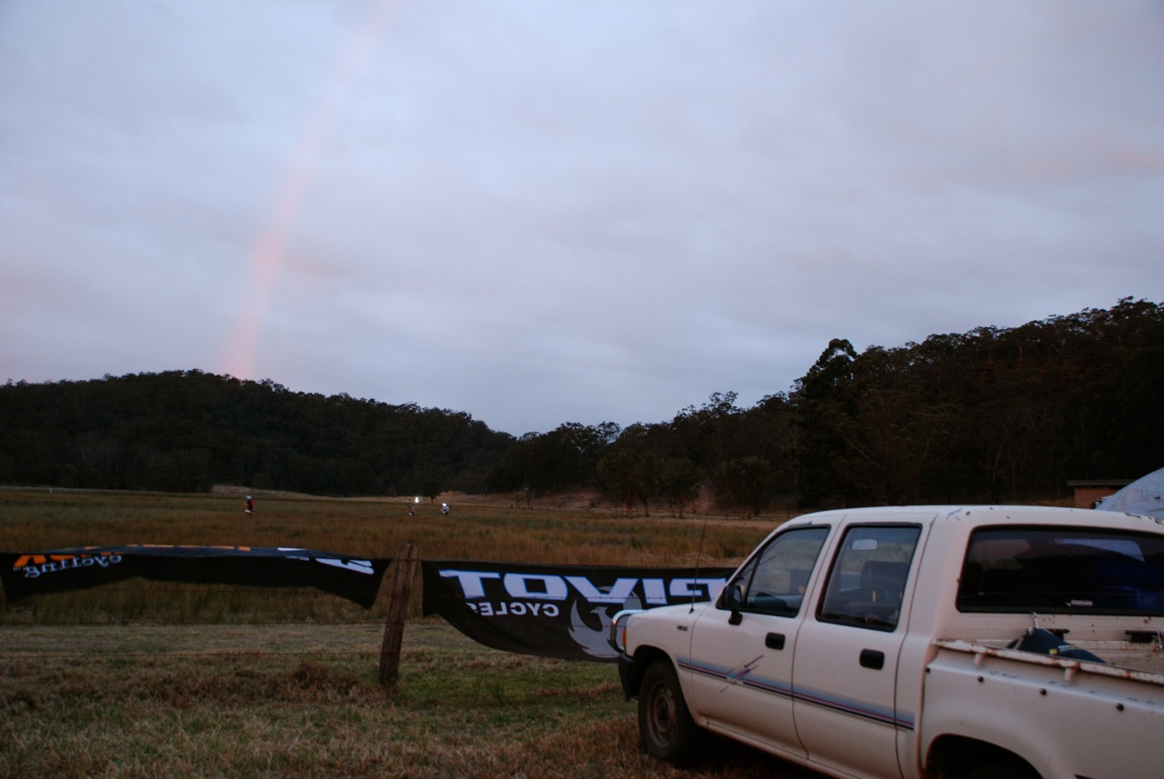 A massive rainbow and an extraordinary sunset signaled the beginning of the night laps and the onset of fatigue. The Steven’s blokes went hard on the final laps which gave them the win while I thanked my team for letting me have a bit more fun in the dark. Norm Douglas, supporting wife Jessica for the solo crown, threw down a fastest female night lap challenge and geed me up to give it a crack. I had the lights, I just needed the flow and the legs. I spent part of the lap giggling to the heckles of bearded singlespeeding icon, Brett Bellchambers, trying not to stack my brains out in front of a smooth riding Andy Hall and remembering how to hurt. These guys had been riding continuously since 9am that morning and make racing look easy. I crossed the line 30 seconds shy of night lap victory but with that adrenaline-filled buzz of going your hardest. I love that a good event allows for pain, ego and laughter to come together in combinations like that one.