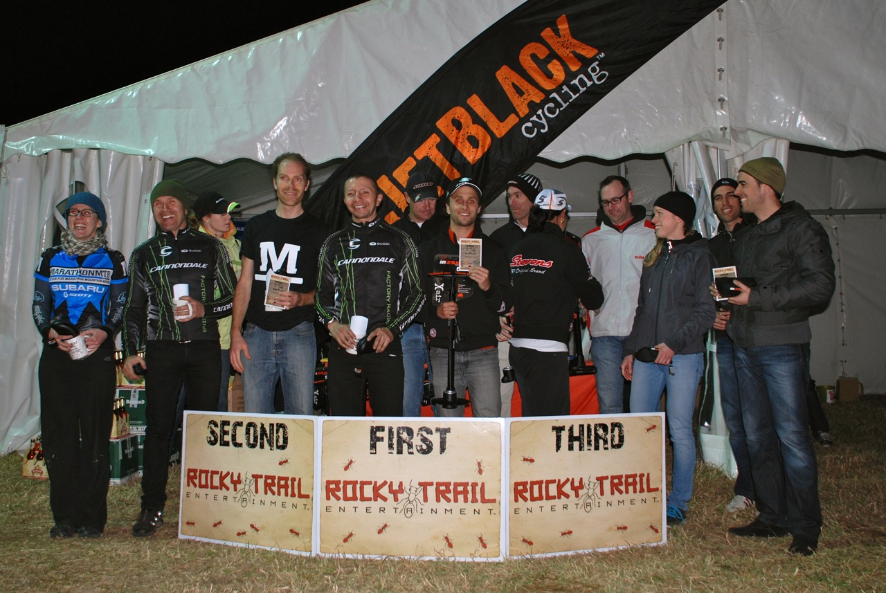 At Saturday’s JetBlack/WSMTB 12 Hour race, hosted by Rocky Trail Entertainment at the Dargle Farm enduro track, the Subaru-MarathonMTB.com mixed four duked it out with the Stevens team all day long. Andrew Arthur’s enviable hot laps pulled their team to the front of the game as the male laps unfolded, and at the end of each cluster of four, I seemed to catch Emma Bussell on the final technical climb. Racing was tight, grins were big and the rain that threatened to ruin the event never appeared.